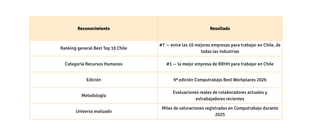 - Ser parte de una organización reconocida como la mejor empresa de RRHH para trabajar en Chile